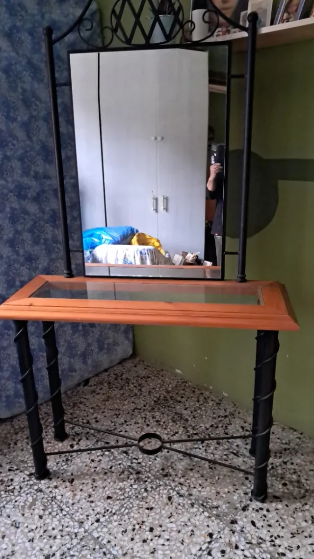 Mueble recibidor con espejo y cristal. 98x39x75cm.