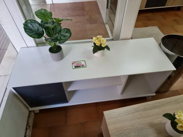 Mueble de televisión moderno con un diseño elegante en blanco y gris. - Amplio espacio de almacenamiento. -Nuevo de fabrica Visitanos en Av de Madrid 44 Tel 641706334