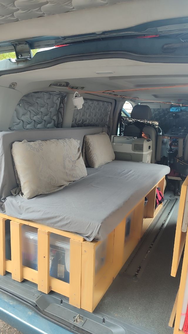 Detalles del productoVendo banco extraíble con colchón hecho a medida para Mercedes Benz Vito Viano W639 junto con una encimera a medida con mesa y un mueble fregadero con sus bidones para aguas limpias grises. Más fotos por privado.