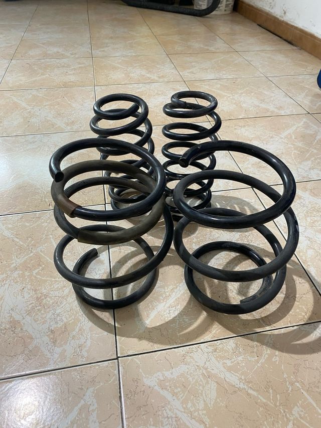 Juego de muelles Eibach para Mini Cooper S R53. Se aprecian en buen estado, aunque usados. - 4 muelles en total. - Para Mini Cooper S R53. - Marca Eibach.