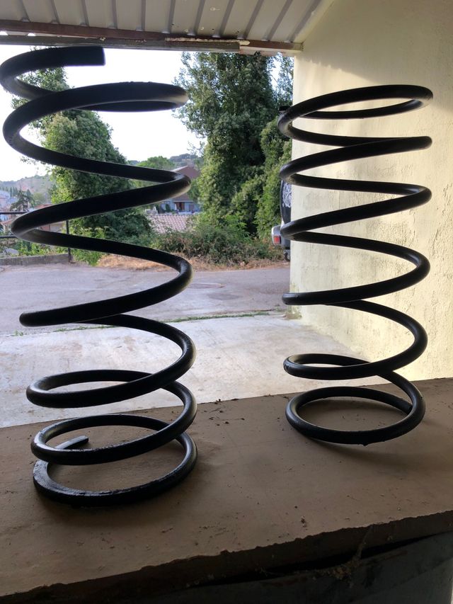 Detalles del productoDos muelles traseros para Mitsubishi Montero modelo V20. Están pintados de negro y en buen estado.