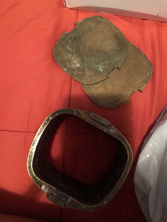 Mufla de latón para uso en prótesis dentales. Pieza de metal con forma cuadrada. - Material: Latón. - Forma: Cuadrada.