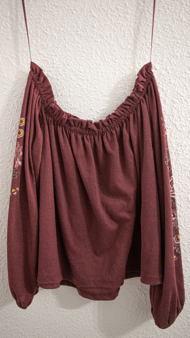 (Mujer) BLUSA GRANATE HOMBROS DESCUBIERTOS