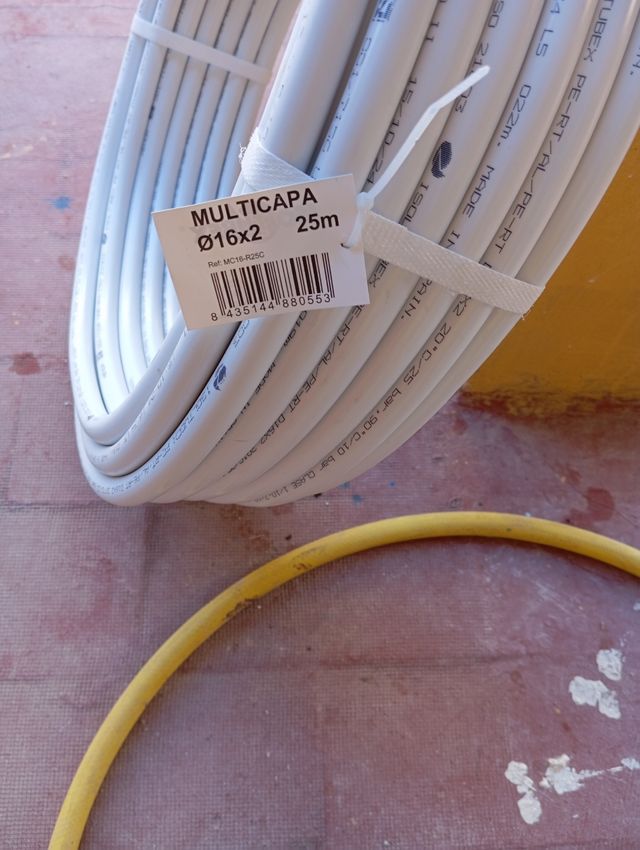 Vendo tubo multicapa de agua de 25m su medida es 16x2 . Está nuevo sin abrir.