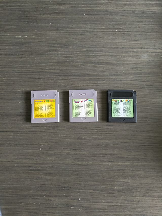 Se vende pack de 3 juegos para Game Boy. Los 2 son juegos de 32 juegos en 1. Estan en buen estado de conservacion y funcionan perfectamente.