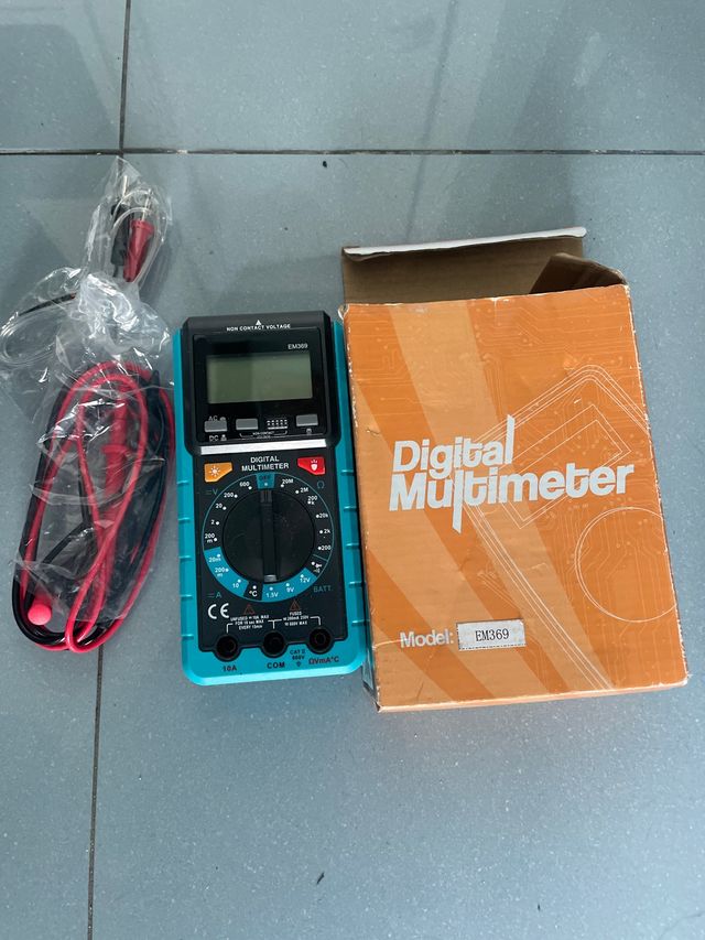 Multímetro digital marca EM369, ideal para mediciones eléctricas. - Pantalla LCD. - Incluye cables de prueba. - Diseño compacto y portátil.