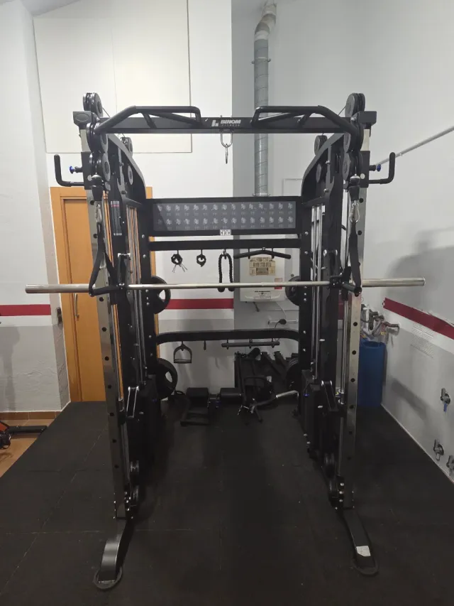 Esta impoluta, se compro nueva en Julio 2025 y se ha usado 20 veces como mucho, incluye muchos mas agarres, si la buscas en internet es el modelo binom steelforce b21 , tengo todos los extras para piernas, brazos, pecho etc, su precio en tienda es de 6495€, OPORTUNIDAD UNICA para tener el gimnasio en tu casa