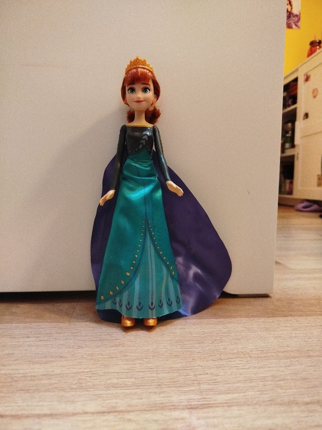 Detalles del productoMuñeca de Anna de la película Frozen, con su icónico vestido azul y corona.