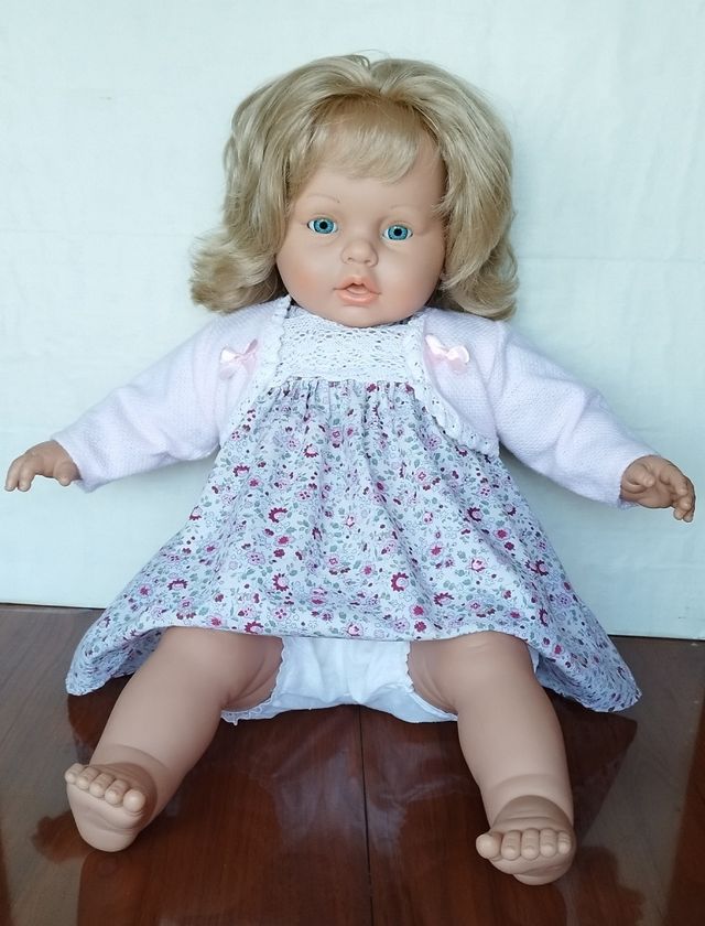 Detalles del productoPreciosa muñeca de la marca Nines Artesanals, fabricada en Onil España. Es una muñeca de tamaño grande de 60 cm, con el pelo rubio y ojos azules, con vestido, chaqueta y braga pololo. Ver fotos son la descripción, hago envíos, no Nancy de Famosa, acepto ofertas razonables