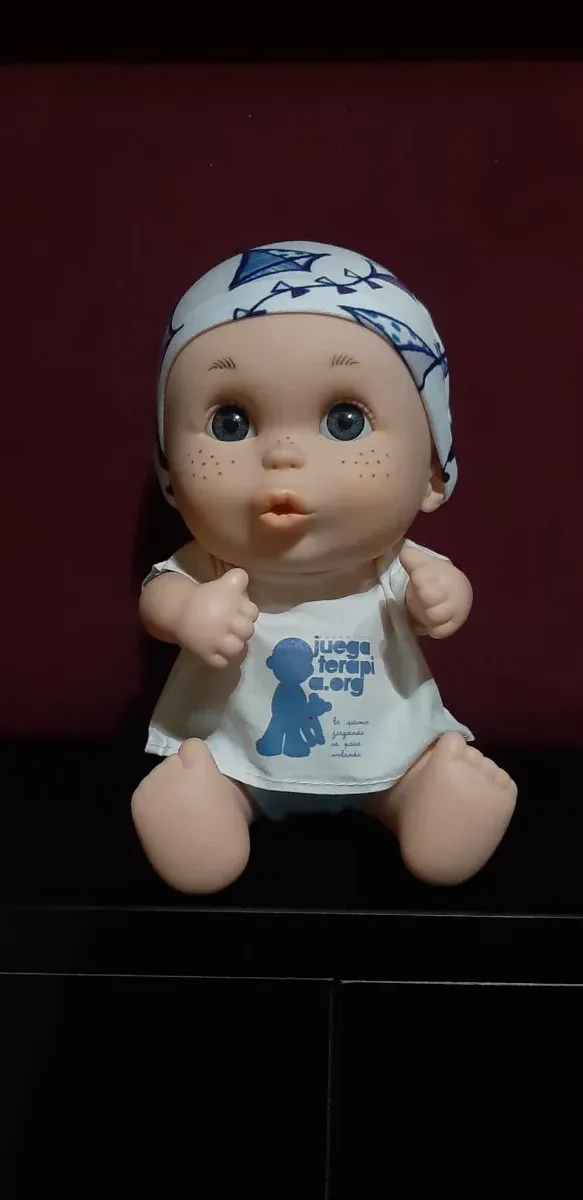 - Viste camiseta blanca con logo de juegaterapia.org.