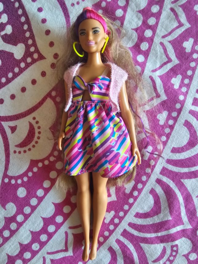 Detalles del productoPreciosa muñeca Barbie de la línea Curvy. Esta muñeca luce un vestido colorido y llamativo, ideal para añadir a tu colección.