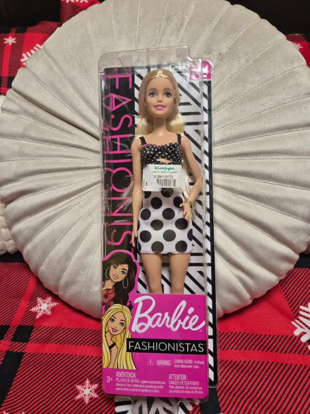 Muñeca Barbie de la colección Fashionistas. - Incluye vestido de lunares. - Cabello rubio. - Empaque original.