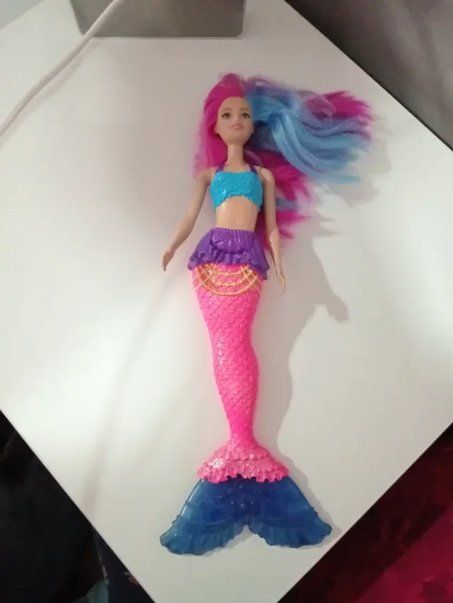 Detalles del productoMuñeca Barbie sirena con pelo de dos colores.