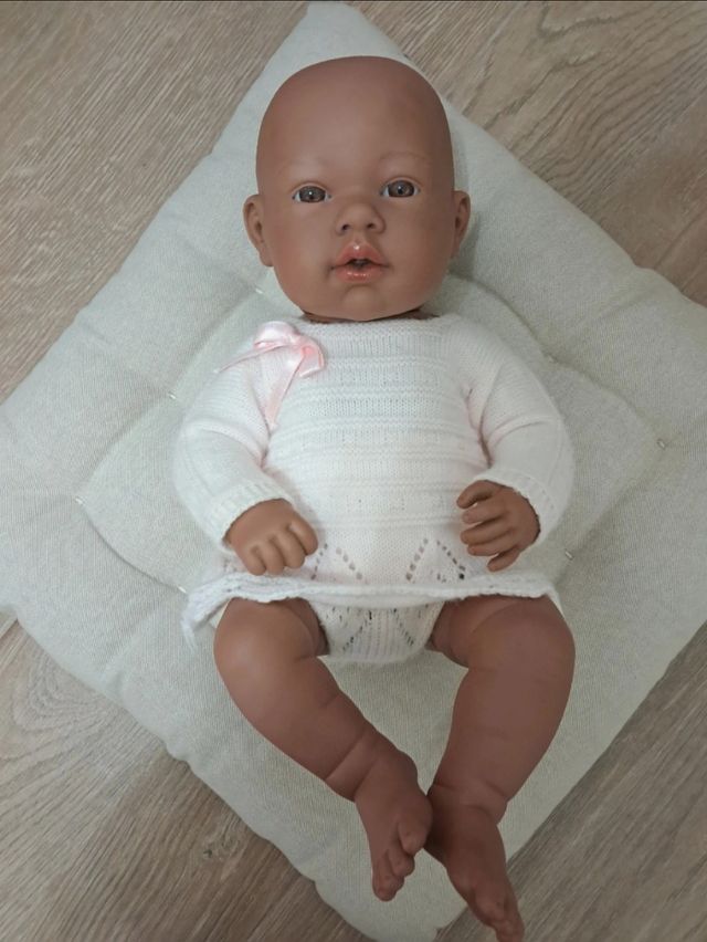 Muñeca de bebé recién nacido, mide unos 42cm. Lleva el vestido de la imagen y está en buen estado. Es de la marca de El Corte Inglés.