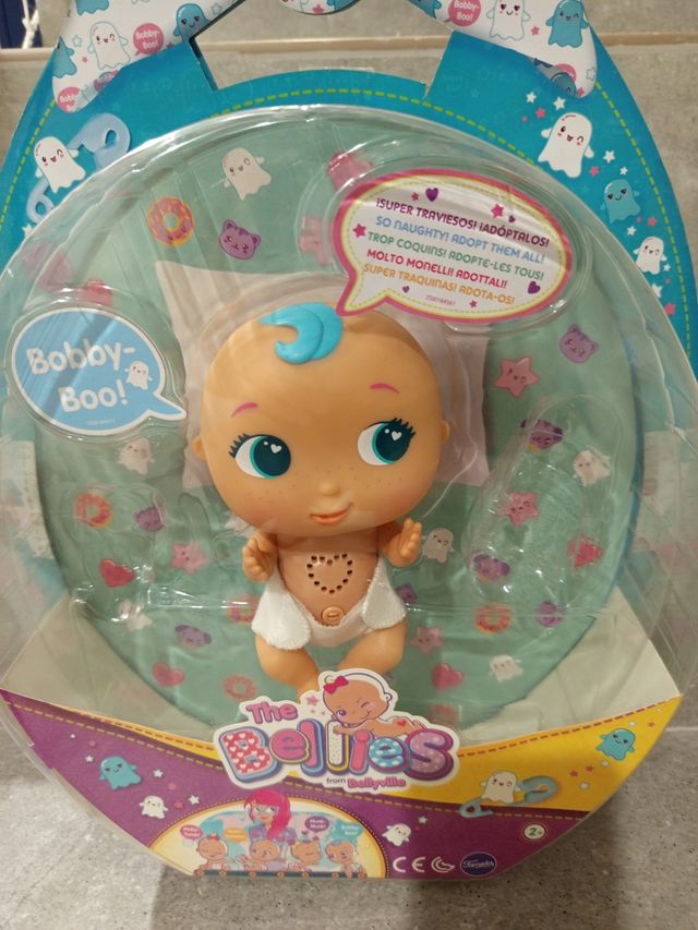 Muñeca Bellies Bobby Boo, ¡lista para adoptar! - Incluye chupete y pañal. - Habla y hace sonidos. - Viene en su embalaje original.