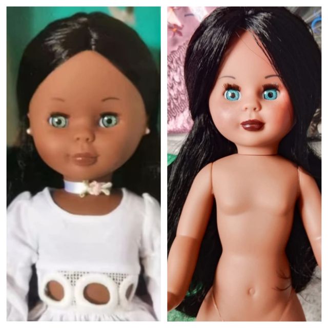 Detalles del productoEstás muñecas están echas con un molde antiguo de Nancy clásica,y rediseñadas a mano ,como las Nancys antiguas la de esta foto del color negro son iguales ,pero con el flas se ven muy claras pero es oscura como el chocolate,la copia,la original no se vende,ago reservas y pedidooriginales,se venden mucho está colección en mi perfil sígueme y mira dentro de mi armario,mis reseñas. Ago envios muy rápidos y seguros.