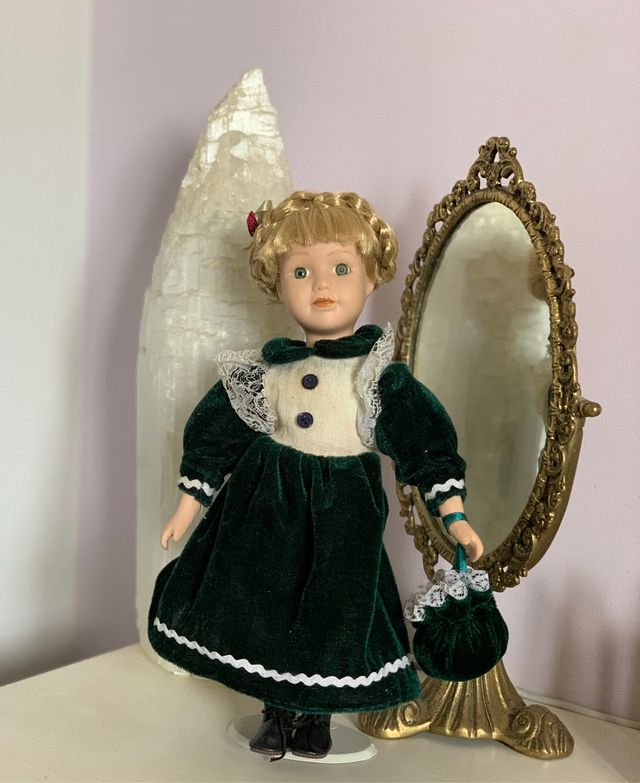 Bonita muñeca de porcelana. Completa( vestido, pantalón, calcetines, zapatos y base metálica). Sin daños en porcelana.