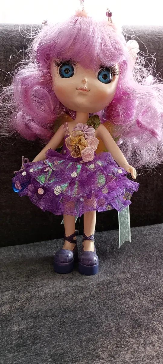 Detalles del productoPreciosa muñeca de porcelana con un encantador vestido morado y alas en espalda. Balancea la cabeza. Ideal para regalo 🎁
