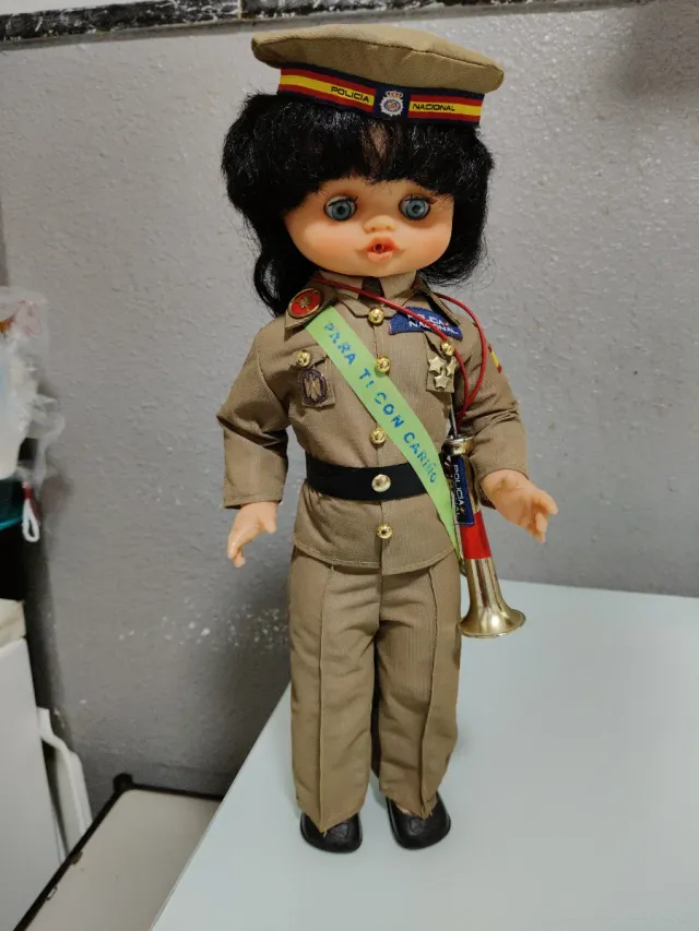 Detalles del productoMuñeca funcionando Policia armada conductor mide43 ojos durmientes brazos articulados toca el quinto levanta cuando se le pone la trompeta se entrega funcionando limpia y pila nueva tengo más modelos de muñecas en mi perfil si tienen dudas mirar mis valoraciones si me facilitan un tlf le mando un video