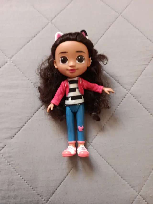 Muñeca de la serie Gabby's Dollhouse. - Incluye orejas de gato. - Viste chaqueta rosa, camiseta a rayas y pantalones azules. - Zapatos rosas y blancos.