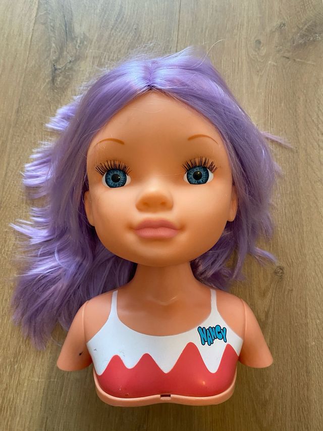 Cabeza de muñeca Nancy con pelo para crear peinados. Con accesorios