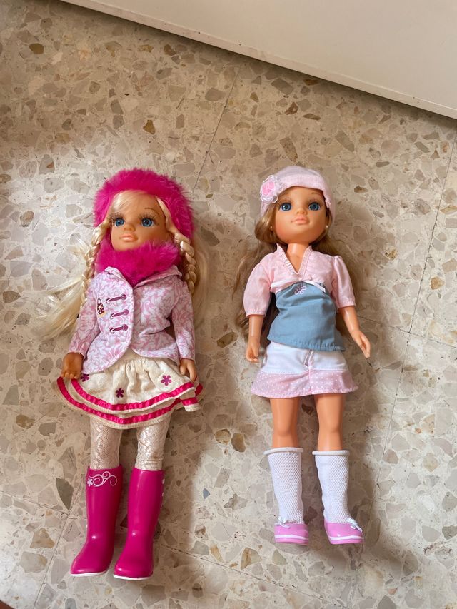 Detalles del productoDos muñecas Nancy con atuendos invernales.