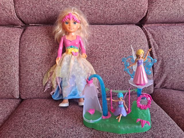 Detalles del productoVendo este conjunto de la muñeca Nancy con su vestido y diadema, junto con 2 haditas y su jardín.