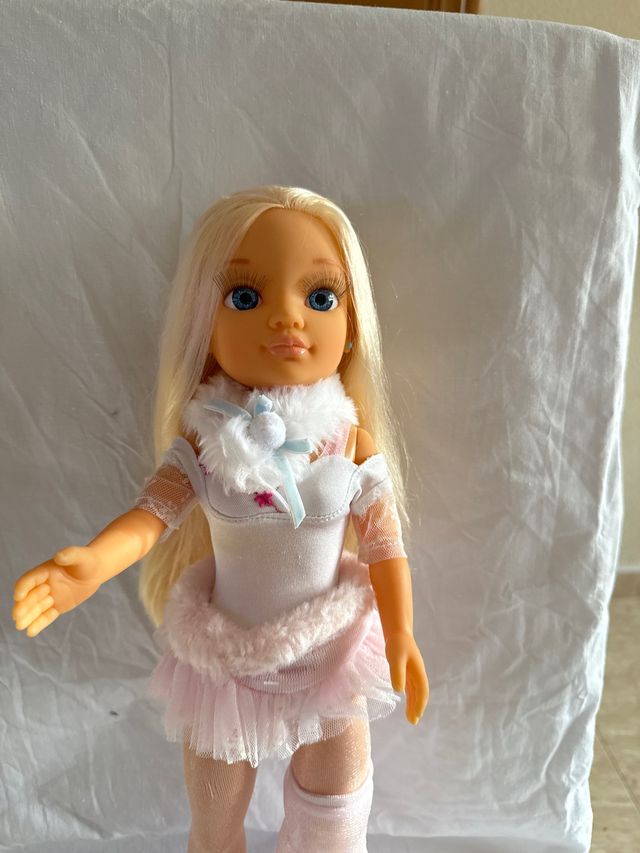 Detalles del productoPreciosa muñeca Nancy, ideal para niñas a las que les guste patinar. Luce un bonito vestido de patinaje y accesorios. - Muñeca de aproximadamente 30 cm. - Lleva un vestido blanco y una falda rosa. - Incluye un gorro blanco peludo. - Está en muy buen estado.