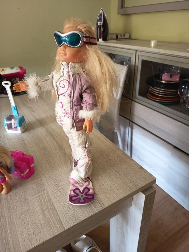 Detalles del productoPreciosa muñeca Nancy con su equipo de snowboard. Está en muy buen estado, lista para nuevas aventuras en la nieve.