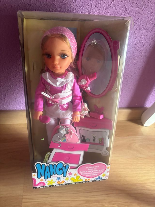 Detalles del productoMuñeca Nancy con temática de veterinaria, lista para cuidar de sus pacientes. Incluye varios accesorios para el juego.