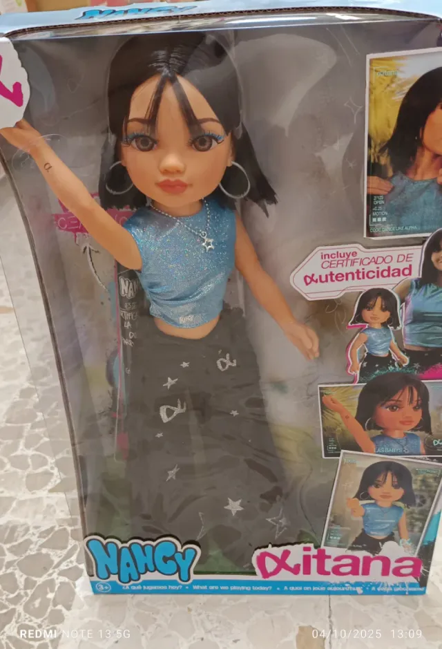 Muñeca Nancy X Itana con certificado de autenticidad. - Incluye certificado de autenticidad. - Muñeca con top brillante y pantalón estampado.