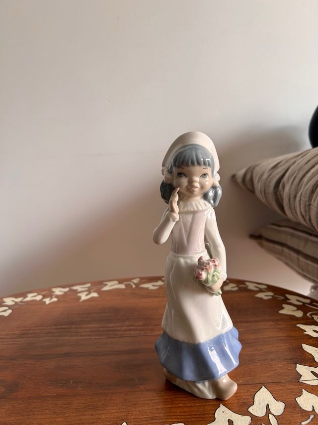 Detalles del productoPreciosa figura de porcelana que representa a una niña. Es una pieza delicada y encantadora, ideal para coleccionistas o amantes de las figuras decorativas.