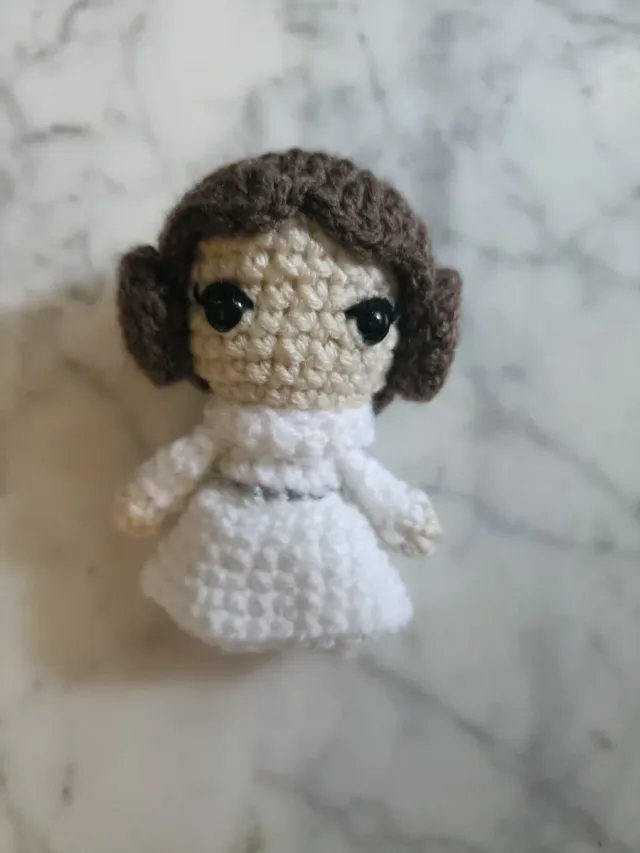 Detalles del productoAdorable muñeca de la Princesa Leia de Star Wars, hecha a mano con la técnica de crochet.