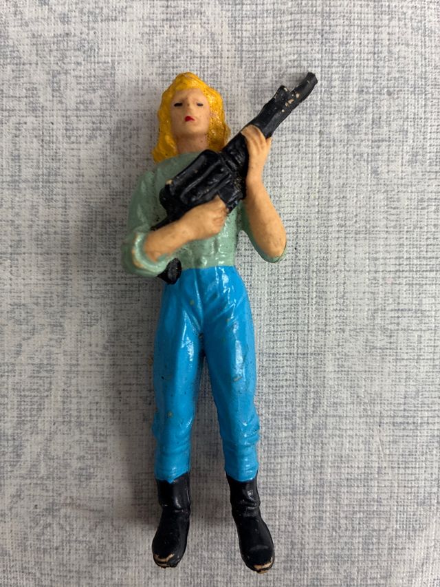 Figura de la serie Los Visitantes. - Muñeca con arma. - Ropa de color azul y verde.