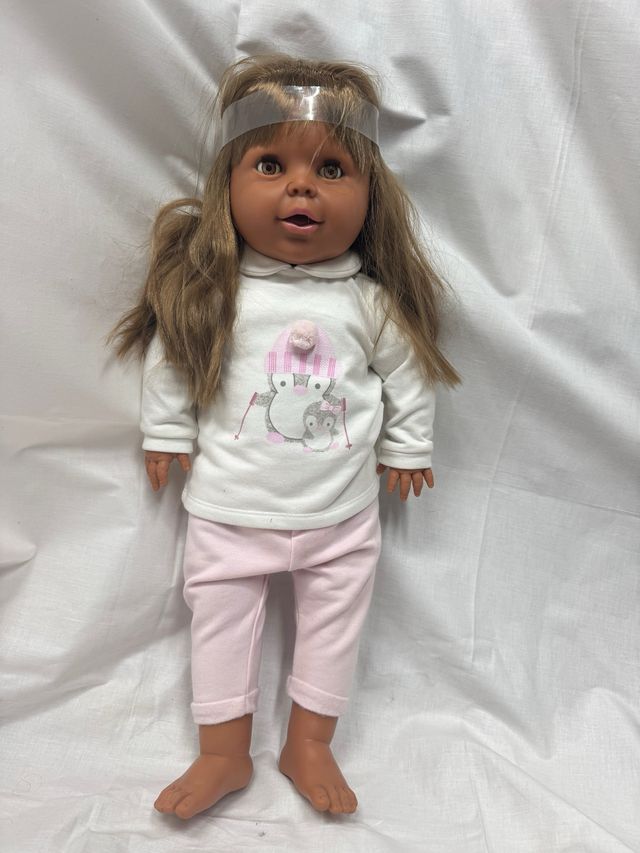 Muñeca de The Doll Factory con pelo rubio. - Mide 60 cm de altura. - Incluye conjunto de ropa.