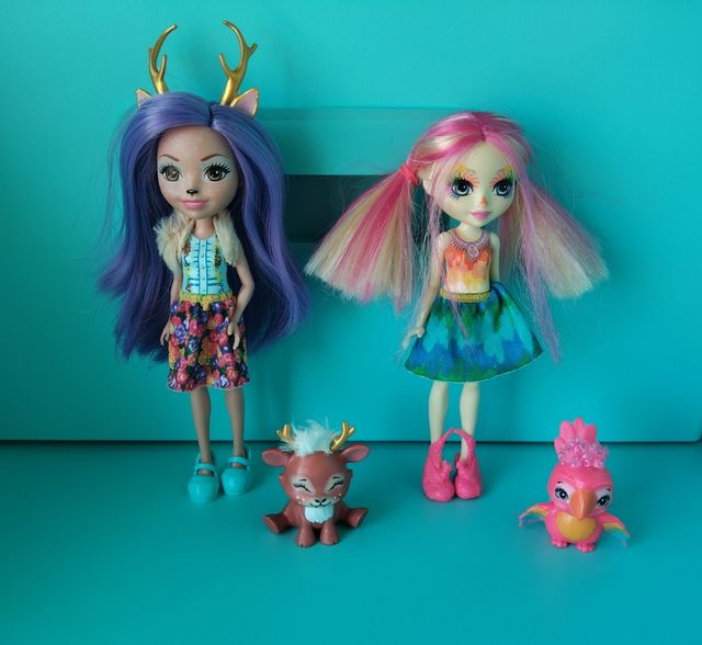 Detalles del productoPreciosas muñecas Enchantimals listas para un nuevo hogar. Se incluyen dos muñecas y dos figuras de animales. Las muñecas están en muy buen estado y las mascotas también. - Dos muñecas Enchantimals.