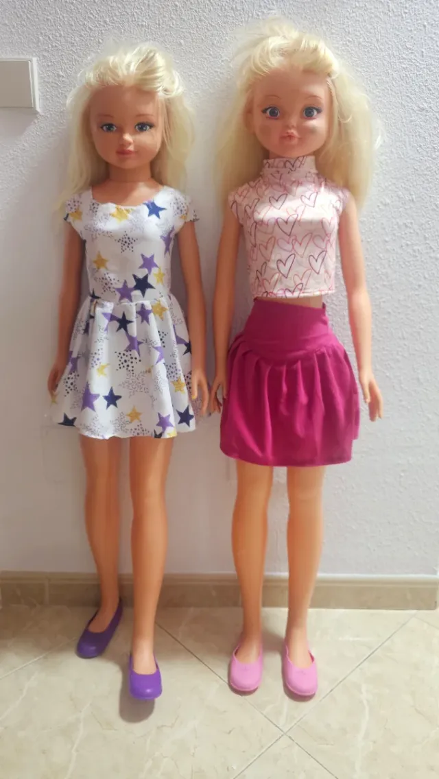 Detalles del productoDos muñecas grandes con pelo rubio.