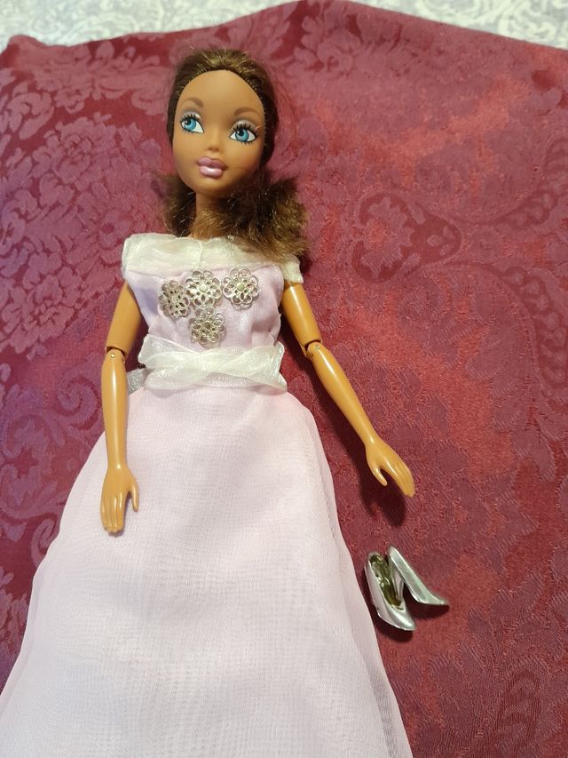 Detalles del productoMuñuca y vestidos para muñecas My Scene Uno es un vestido de novia blanco con velo, vestido rosa claro de princesa con detalles dorados, vestidos de diferentes estilos, zapatos y un bebe¡Perfectos para jugar o coleccionar!