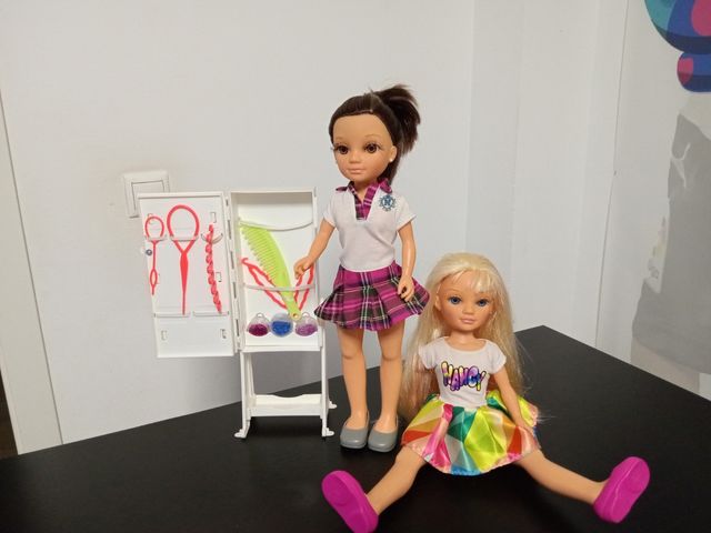 Detalles del productoDos muñecas Nancy, una morena y otra rubia, con sus accesorios.