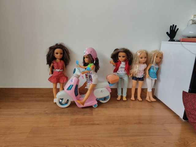 - Incluye 5 muñecas Nancy y una moto scooter rosa.