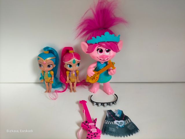 Preciosas muñecas en buen estado. - Incluye dos muñecas Shimmer y Shine y una muñeca Poppy Trolls. - Se venden juntas.