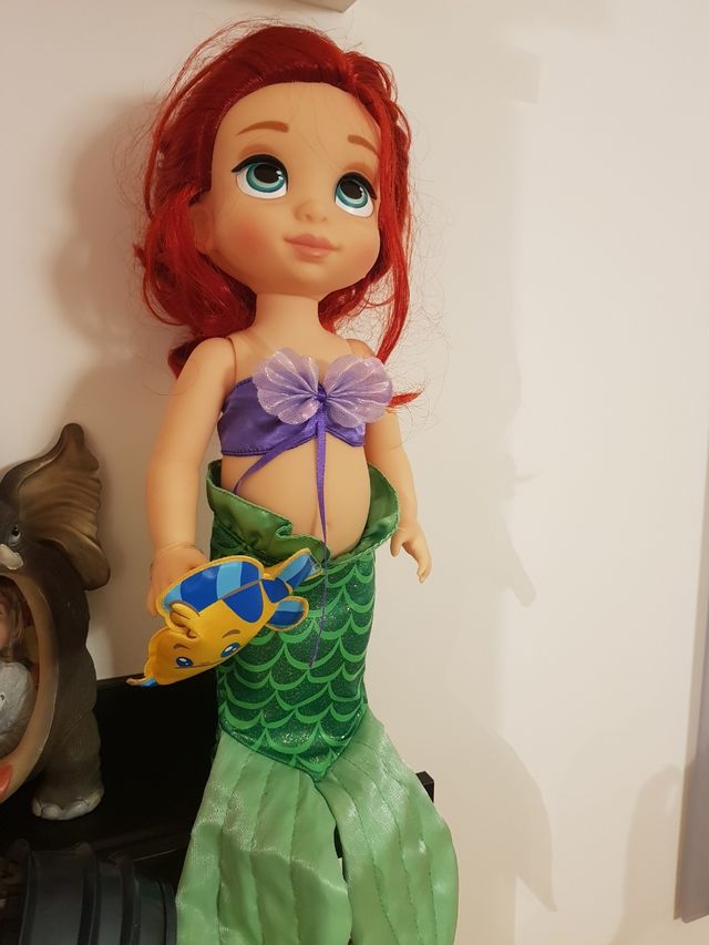 - La muñeca con cola de sirena incluye un pequeño peluche de Flounder.