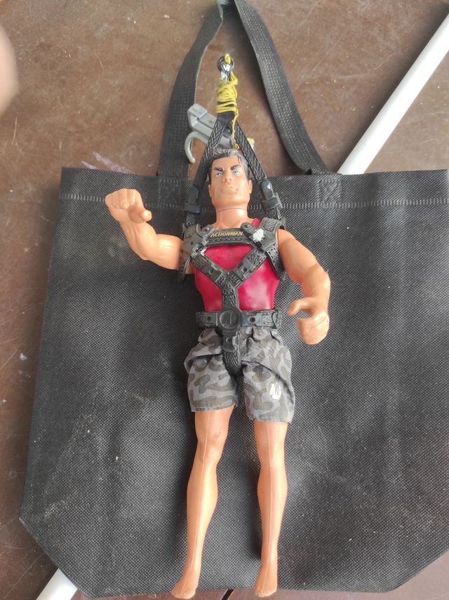 Muñeco Action Man con arnés
