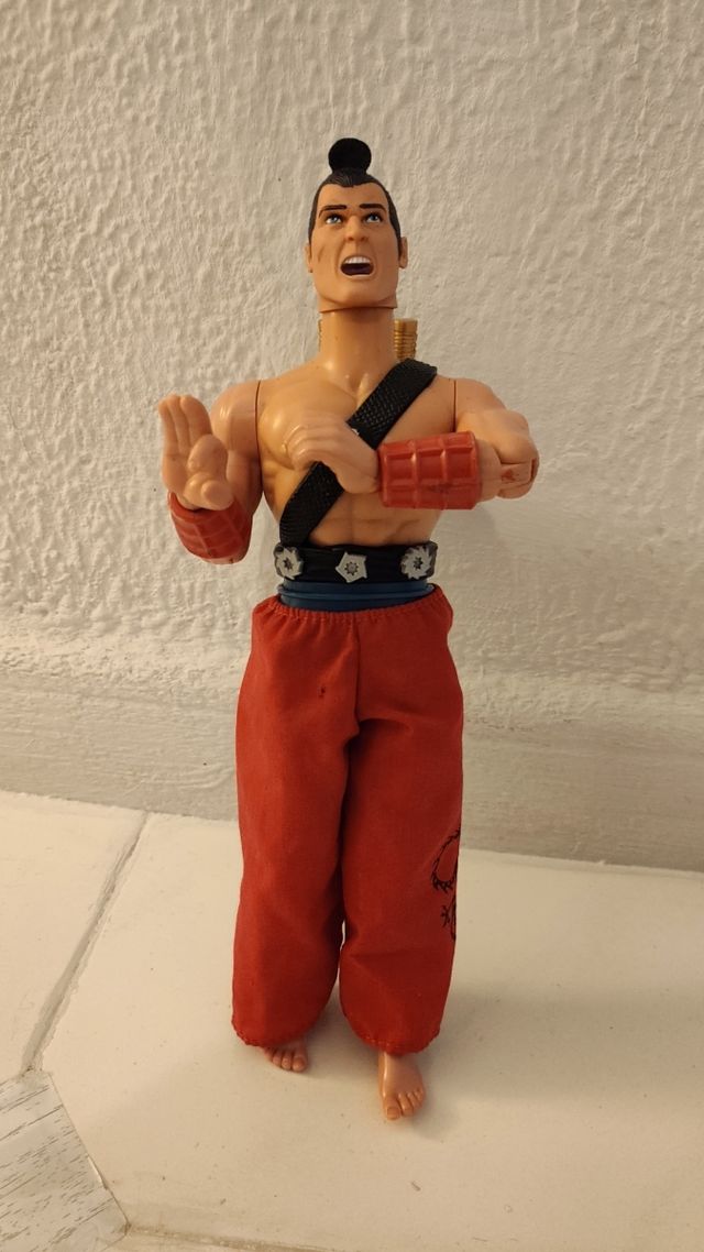 Viene equipado con sus espadas y además es articulado, hace movimientos presionando un botón Original de Mattel