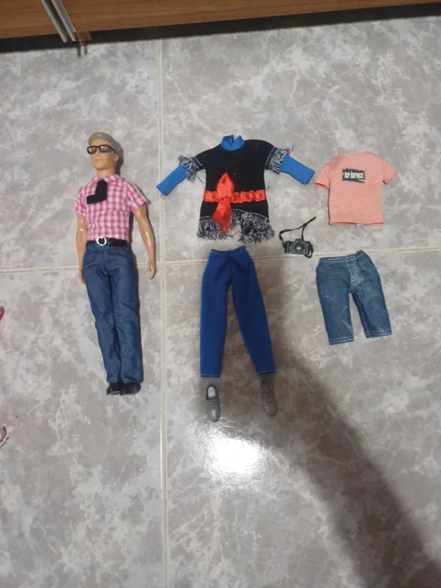 Detalles del productoLote de muñeco Ken de Barbie con varios conjuntos de ropa y accesorios.