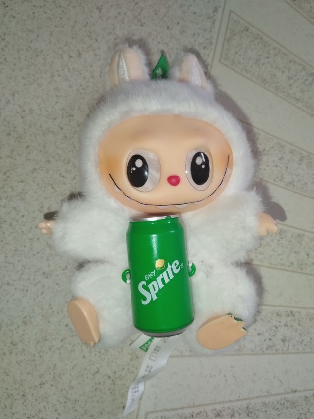 Figura coleccionable de Labubu, con su característico diseño. - Incluye una lata de Sprite. - Peluche suave y detallado.