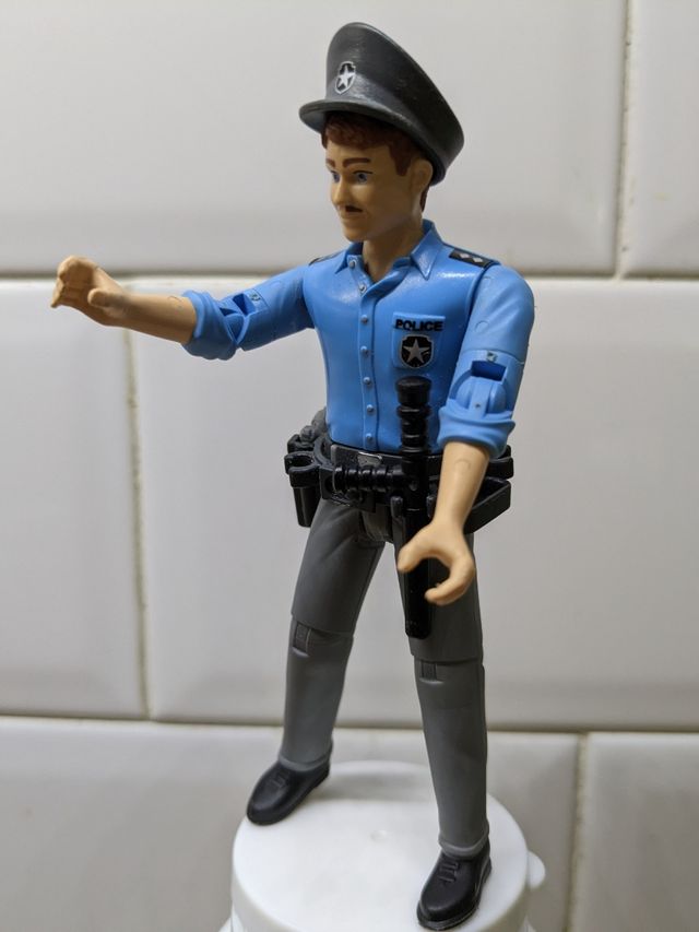 muneco policía de bruder con sus dos accesorios pistola y porra