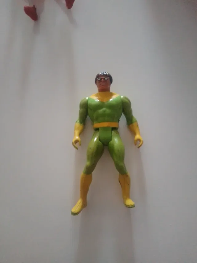 Figura de acción coleccionable de los años 80. - Diseño clásico de superhéroe. - Colores verde y amarillo. - Ideal para coleccionistas.