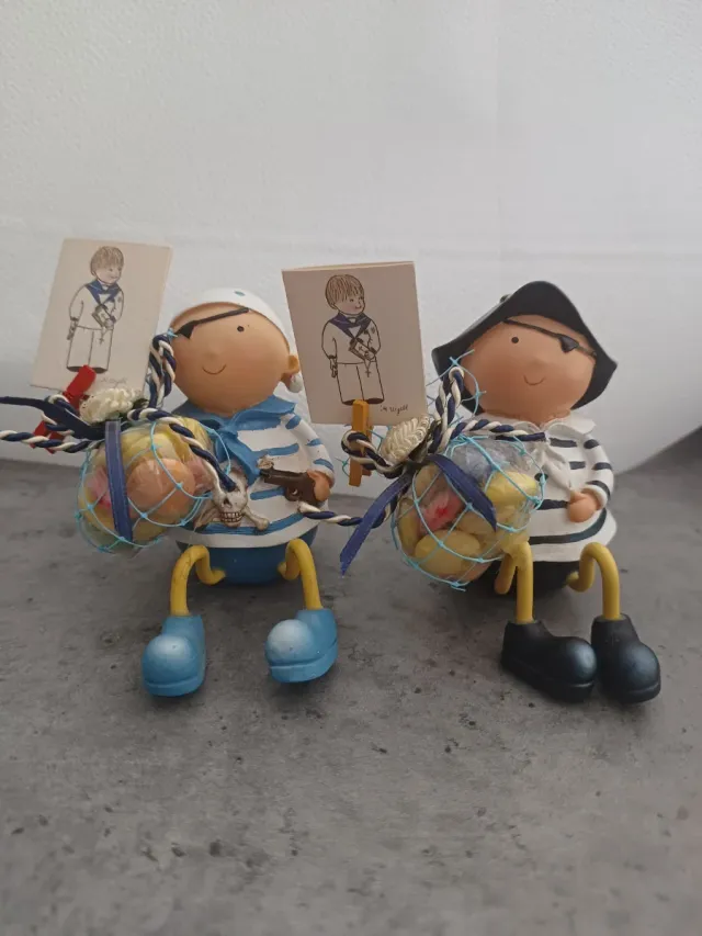 Detalles del productoSet de dos muñecos decorativos con temática marinera, ideales para comuniones.