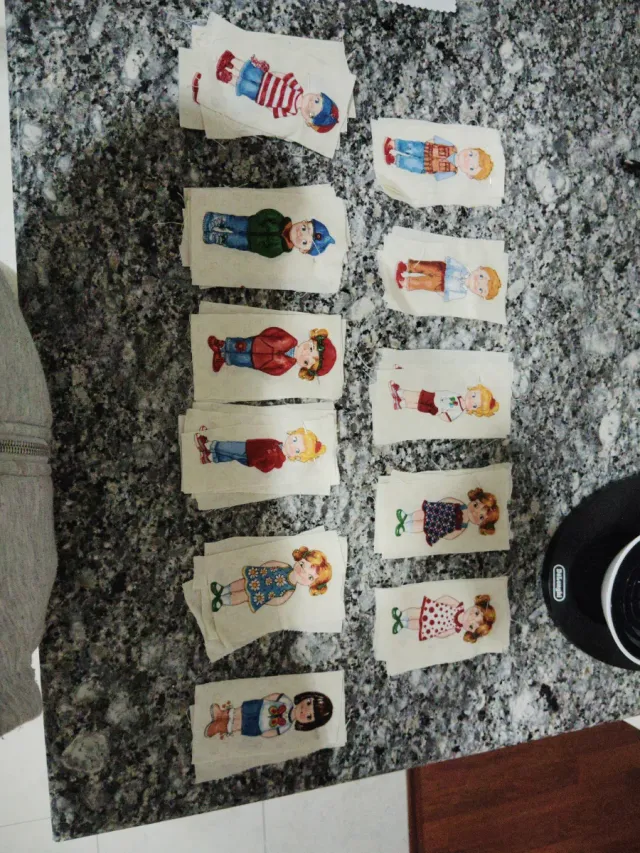Muñecos recortables tela niño y niña. Unas 50 unid